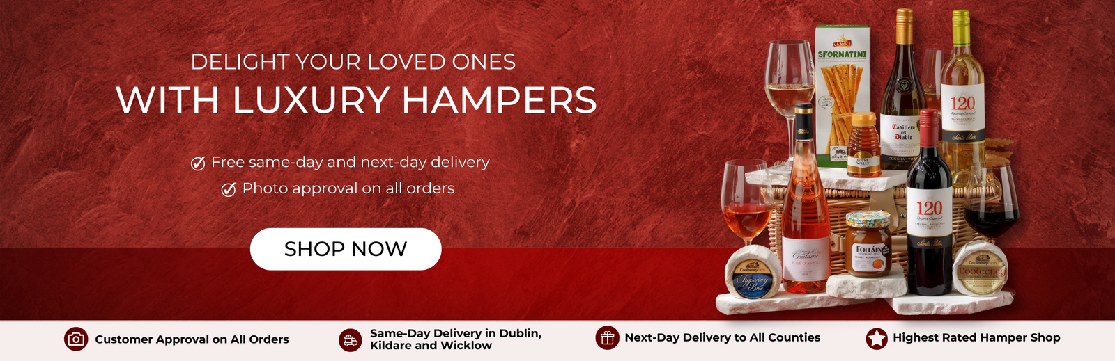 - Ireland's highest-rated hamper shop offering a fast and reliable delivery service all over the Republic of Ireland and Northern Ireland.